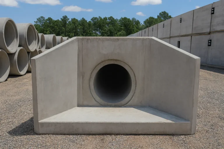 Each unit is cast with precision and can be customized to fit your project’s specific layout, pipe connections, and flow requirements. Precast drainage structures save time on the jobsite by reducing formwork, curing time, and labor, all while maintaining structural integrity.